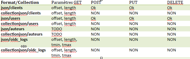 - un format : c’est le nom de l’API réellement implémentée : json, collectionjson.